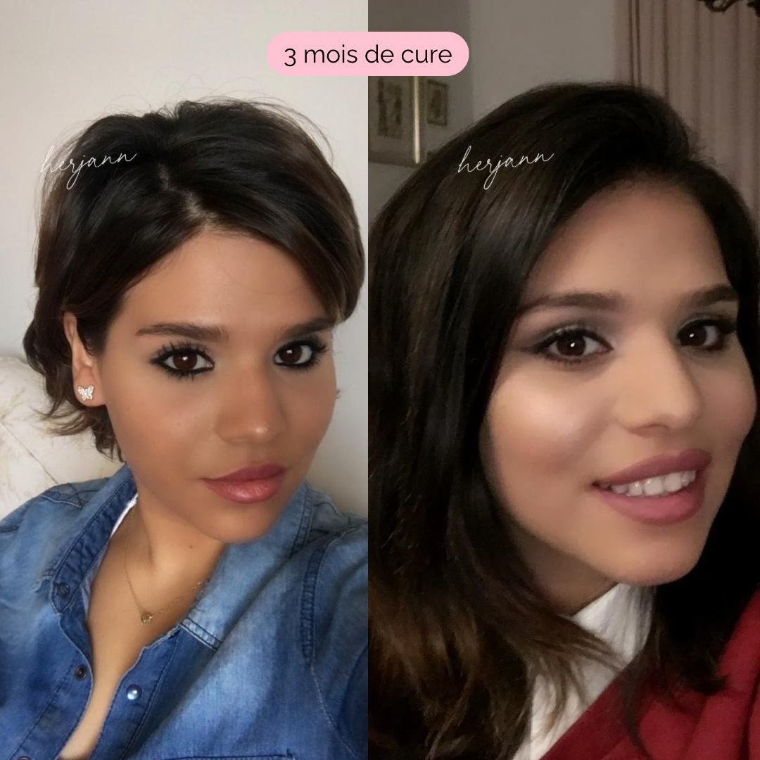 "Après avoir coupé mes cheveux, j'ai tout de suite regretté et je voulais regagner ma longueur. 12 cm en 3 mois, mission accomplie. Je vous recommande à tout mon entourage"